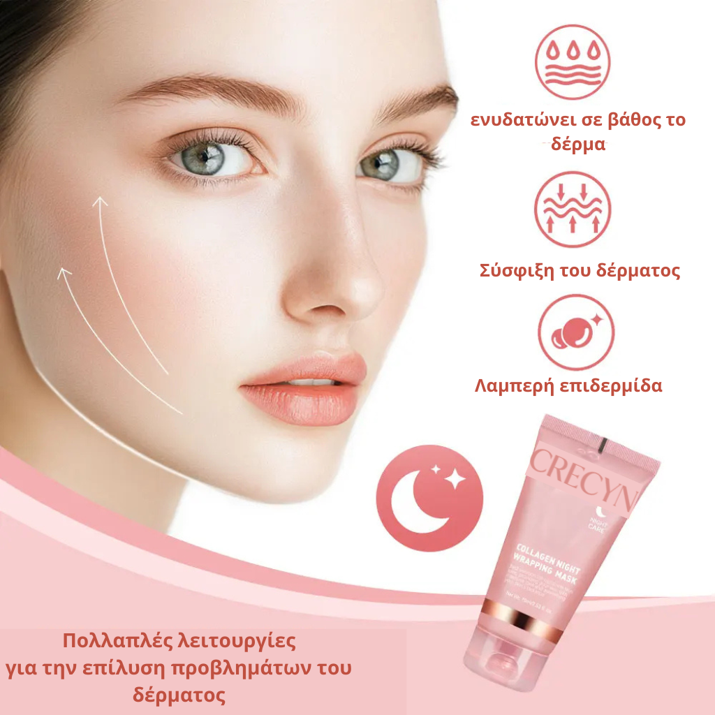 Η κορεατική μάσκα περιτύλιξης με κολλαγόνο δρα όλη τη νύχτα για να συσφίξει, να ενυδατώσει έντονα και να αποκαλύψει μια λαμπερή επιδερμίδα το πρωί.